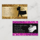 Classy fashion and beauty hair fashions business cards with beautiful simulated gold background and gold glitter look printed on the front and pink simulated glitter printed on the back. Customize this template by adding your own text on the second side with two side printing included. Best business cards for a clothing boutique, fashion outlet, or online style and hair fashions salon.