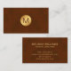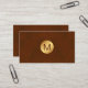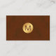 Classy Faux Brown Leather & Gold Initial Logo Business Card