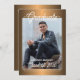 Unique and trendy congratulations graduate announcement and celebration party invitation card, with a classic faux shiny brass copper gold gradient coloured background. With room to customise or personalise with a photo, the name of the graduate, class graduation year, high school, future college or university name, and celebration party event information. Let the family, friends and neighbours know there is a happy graduate ready to conquer the world, and invite everybody to come celebrate the happy event with you!