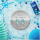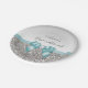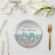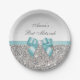 Classy Faux Teal Bow Silver Sequins Bat Mitzvah Paper Plate