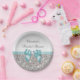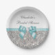 Classy Faux Teal Bow Silver Sequins Bridal Shower Paper Plate