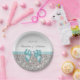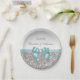 Classy Faux Teal Bow Silver Sequins Wedding Paper Plate
