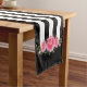 Elegant black and white stripes with beautiful pink roses wedding or bridal shower theme table runner.