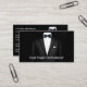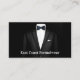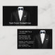 Classy business cards for a Formalwear or Tuxedo Rental service designed with a men's suit on the front and back in this double side design already organised so you just replace our text with yours.