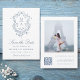 Classy French Blue Floral Crest Wedding Photo Save The Date