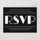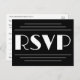 This generic respectable RSVP postcard design features the message "RSVP" on the front. It also features a custom RSVP form on the back for the recipient to complete, along with a custom address that the completed RSVP cards would be mailed to. RSVP cards like this might be used to find out who will be attending a graduation party, a wedding shower, a retirement party, or some other event.