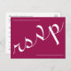This classy, glamourous RSVP postcard design features the message "rsvp" on the front. It also features a customisable RSVP form on the back for the recipient to complete, along with a customisable address that the completed RSVP cards would be mailed to. RSVP cards like this might be used to find out who will be attending a birthday party, a wedding anniversary party, a wedding shower, or some other event.
