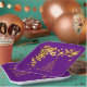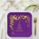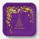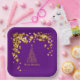 This paper plate features a gold abstract Christmas tree and golden stars on a purple background. You can customise this item by adding a name, monogram or other custom text.
