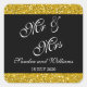 Classy Gold Glitter and Black Mr & Mrs Wedding Square Sticker
