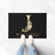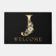 Classy Gold Monogram J with Floral Arrangement Doormat
