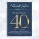 Classy Gold Navy Blue 40th Birthday Thank You Card