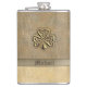 Classy golden Irish lucky shamrock leather look Hip Flask