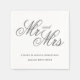 Chic grey Mr and Mrs paper wedding napkins. Elegant script typography design for classy wedding party. Stylish handwritten calligraphy grey text. Customisable colours personalised with name of bride and groom.