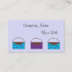 A stylish chic business card in pale blue with three fun purses in blue and purple with chocolate brown accents. Great for any boutique or accessory type business. Customise with your informaiton as desired.