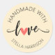 Classic classy modern handmade with love dusty yellow sticker with heart in red.