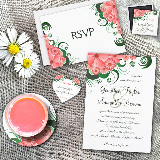 Pink Floral Hibiscus on White Custom Wedding SetDesigned by Marina