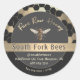 Gold Gradient Band across label shows off your apiary name on this dark brown/taupe label with iridescent gold honeycomb pattern and vintage queen bee illustration.