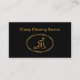 Classy house cleaning services business card template online designed with gold colored design element and cleaning symbol. A smart two side design that includes two side printing for a house maid, house cleaner, or cleaning lady.