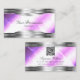 Classy Lilac Silver Shimmer Borders with QR Code Business Card