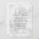 featuring bride and groom's name in grey elegant script font style and details in grey classic serif font style with large date in light grey as background on white marble background.