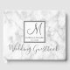 Monogrammed wedding guest book with a classy look. The white marble background adds a unique and luxurious touch to the monogram guest book.