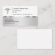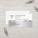 Classy medical business cards with smart design that includes a silver coloured medical symbol that has a metallic look and silver coloured background design element. Customise the text to make it your own and hand out your business cards in professional style. Designed for a doctor office, medical or health insurance agent.