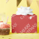 This respectable and luxurious Christmas wrapping paper design features the message "MERRY CHRISTMAS!" in white coloured text on a red coloured background. Wrapping paper like this might be used to wrap presents being given in celebration of Christmas.