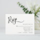 Elegant and unique wedding RSVP cards. White background (can be changed to any colour) and black script calligraphy RSVP. Initials of bride and groom in back of card. Place to add MENU choice. Editable templates so you can add your own text. Perfect for any wedding theme or time of year. Add these reply cards to your invitations. See collection.