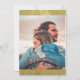 Photo wedding invitation for your special day. Simple, elegant faux gold accent over luxurious ivory background wedding invitation, with ornate calligraphy mix. Reverse has a photo of the wedding couple with gold accent trims.