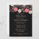 Elegant, personalised, floral baby shower custom invitation template for girls with beautiful, modern, big, bold, colourful, hot pink, green grey / grey, and beige colours stylised vector art illustrations Chrysanthemums flowers and leaves decorations with polka dots spots patterns top and bottom borders on a black background. Stylish, fancy, classy, chic, custom invitations for girls' baby showers. These sophisticated, girly, cute, feminine, whimsical, trendy, vibrant, fashionable, informal baby shower invites templates with a clean, simple, contemporary retro design are decorated on both sides / have double sided printing / are printed front and back. Bright and cheerful, colourful, groovy, fun, funky, pretty, summery invites, perfect for spring and summer events, but also suitable for any time of year. All of the text on the front and reverse side is fully customisable / personalizable to meet your needs. If you need assistance customising your product please contact me through my store and I will be happy to help. PLEASE NOTE: All products on Zazzle have flat printed images.