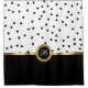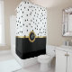 Classy bathroom shower curtain in a monogram design you can personalise with your own family name initial. Designed in gold, black, and white with a stylish and trendy polkadot pattern. Adds a touch of class to any bathroom decor.