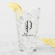 Stock your bar with beautiful personalised glassware. This design features a lovely ornamental scroll monogram P along with your last name.