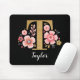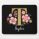 A beautiful, feminine monogrammed pink floral mouse pad, featuring pink flowers and a faux gold monogram letter T on a black background. Personalise the mouse pad by adding your name underneath the monogram. Makes a fun gift for a friend or for a bridesmaid gift. Designed for you by Blackberry Boulevard.