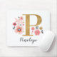 A beautiful, feminine monogrammed pink floral mouse pad, featuring pink flowers and a faux gold monogram letter P. Personalise the mouse pad by adding your name underneath the monogram. Makes a fun gift for a friend or for a bridesmaid gift. Designed for you by Blackberry Boulevard.