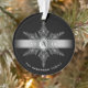 Fancy Holiday Keepsake Christmas Photo Ornament -- Elegant silver filigree snowflake on black background with ribbon. Add your own favourite family, child, or pet picture on the back to create unique personalised keepsakes -- perfect for baby's first, engaged or newlywed couples, graduation, milestone celebrations, and pet memorials. Chic and fashionable trendy memento to hang on your tree and enjoy the memories for years to come, or send as gift to friends or loved ones far away.