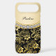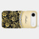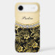 Classy monogram smartphone cases for iPhone 6 including fancy floral damask design and simulated rhinestones jewels digitally printed on the cover. Personalise the monogram name with your name or initials in this elegant design that lets you carry your cellphone in style with your own personal touch.