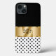 Classy smartphone case in an elegant and stylish design including simulated gold design elements digitally printed on the cover, chic black and white polka dots, and monogram name initials you can personalise and make your own. Designed for ladies or girls who like to carry their cellphone in style.
