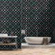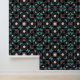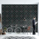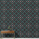 This peel and stick wallpaper draws inspiration from Moroccan aesthetics, infusing your space with an exotic allure. Against a deep black background, an intricate geometric lattice unfolds, reminiscent of traditional Moroccan tilework. The interlocking shapes—teal, brown, and pink—create a mesmerising pattern.