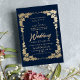 This elegant, modern, design includes a classy navy blue gold with printed gold handwritten typography and a floral frame border wedding invitations. This Wedding Invitation is the perfect print for any bride and groom's Wedding event. Customise this design with your details and monogram initial.