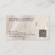 This classy and exquisite business card is the hallmark of distinction for the Notary Loan Signing Agent. The front presents an elegant feather pen in an ink pot, a timeless symbol of your professional commitment, set against a photo of a marble style painted surface with gold foil and the customisable text, "Notary Loan Signing Agent." On the back, your personalised information is tastefully arranged on the marble and gold foil photo background, offering a tactile illusion and a vintage aesthetic. It includes your name, job title, contact details, and a QR code for seamless digital integration, all accentuated with the touches of gold foil in the background photo that lend a subtle opulence. This card not only conveys your credentials but does so with a luxurious feel and an air of sophistication.