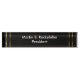 This closely executive desk name plate is designed in gold and black with gold colored design accents that frame the name drop in style. Simply replace the name and title online with yours and you have a professional desktop design in high quality acrylic. makes a great executive gift or office gift.