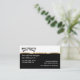 Classy business cards for an Optician or optical store designed with a gold tone design element in a gold black and white colour combination that give this design a touch of class.
