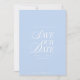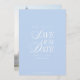 This classy elegant save the date card in pastel blue features a minimalist design with "save our date" styled in a mixture of classic text and elegant calligraphy script that lends a sophisticated, classy style with old money vibes. The design also features a place to add your photo that covers the entire back of the card.