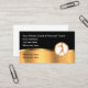 Classy Personal Fitness coach and Trainer business cards in an upscale editable custom design template with gold tone design elements and rounded corner business card stock.