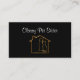 Classy pet care business card template in a smart two side design with graphic image of a gold house, dog, and cat symbol on the front along with text space designed to be customised your way. Best business cards for a pet sitter, veterinarian or other pet industry business.