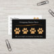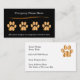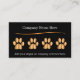 Pet service business cards with modern design that includes four gold coloured pet paw prints, a gold accent element and smart two side design with text space to personalise and customise for your pet theme business.