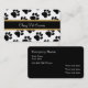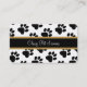 Classy pet service business card online template you can customise. Designed with a paw print pattern as a backdrop to a gold and black business name banner featured on the front. An elegant double side business card. Printed on high quality UV coated business card stock.