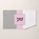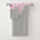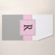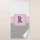 A classy pink, white, and grey graphic design, this bath set includes a wash cloth, hand and bath towel. Each item features a template where you can insert your monogram initial to suit your personal needs. With easy to customise background colours, choose from a variety of shades.