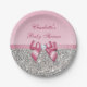 Classy Pink Bow Silver Sequins Baby Shower Paper Plate