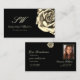 Classy Plain Black Beige Rose with Initials Photo Business Card